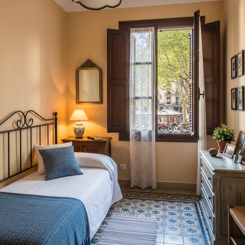 Piso con encanto en el corazón de Gràcia. Conserva elementos originales como mosaicos hidráulicos y techos altos. Salón acogedor, cocina abierta y dormitorio con ventana a patio interior. Excelente ambiente de barrio.